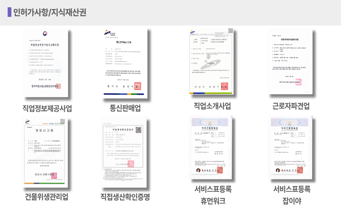 통신판매업 신고번호 : 제2012-경기안산-0636호 ㅣ 직업정보제공사업 : 중부안산-제2012-005호 ㅣ 직업소개사업 : 제2021-5560002-14-5-00004호